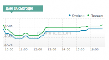 Рост котировок доллара за день на 2,5 копейки — с утренних 27,82/27,84 гривен до 27,845/27,865 к концу торгов.