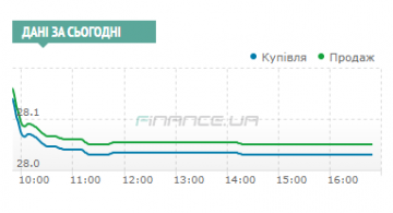 В начале по 28,05 гривен регулятор купил по наблюдениям участников рынка $15-20 млн, а затем очень долго стоял на рынке с котировкой выкупа по 28,03 гривны за доллар. Именно эти действия НБУ и не дали курсу американской валюты просесть ниже порога в 28 гривен к цели – как минимум, 27,90 гривен к концу сессии.