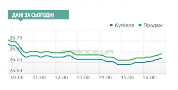 С самого начала сессии предложение превышало спрос и с утренних 26,725/26,745 гривен доллар просел до 26,675/26,695 к 11 часам и продержался в этих пределах до 12:00.