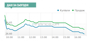 2) Нацбанк дважды выходил на межбанк с интервенцией. И купил первые $ 5 млн по курсу в пределах до 26,64 гривен, а затем под конец сессии покупал валюту уже по 26,615.