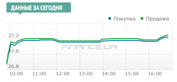 К 12 часам курс остановился на отметке 27,185/27,2050 гривен, а затем благодаря активным продажам НБУ и Укргазбанка (вышел с продажей по 27,19 и ниже) – курс ненадолго просел до 27,155/27,175 к обеду.