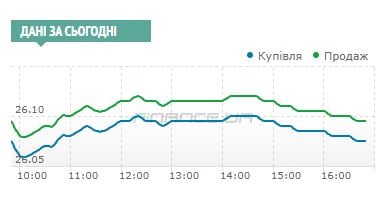2). Нацбанк на рынок сегодня выходил всего один раз и купил $ 5 млн по цене не выше 26,07 гривен.