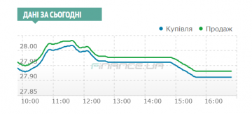 Снизили свои аппетиты и продавцы, что привело к компромиссу по курсу в пределах 27,995/28,01 гривен к 12 часам и проседанию котировок до 27,96/27,975 к обеду. Этот уровень котировок продержался с небольшими отклонениями уже до самого окончания активной фазы торгов.