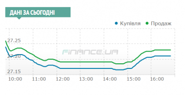 К 14 часам доллар находился в пределах 27,17/27,19 гривен, а регулятор пополнил резервы еще на $50 млн по 27,17 гривен и снова ушел. Но предложение опять стало превышать спрос и Нацбанк в третий раз вышел на торги с заведомо низким ценником в 27,16 гривен.