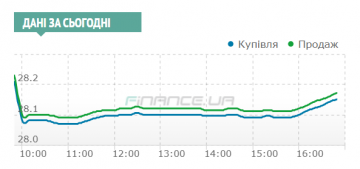 Нацбанк сегодня на торгах не появлялся, хотя в самом начале сессии, когда предложение превышало спрос — часть продавцов очень бы хотели, чтобы он вышел. Но регулятор взял паузу и котировки всю активную фазу торгов прошли в пределах достаточно узкого коридора 28,07−28,10/28,11−28,12 гривен за доллар.