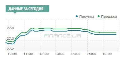 Еще через полчаса доллар повысился до уровня 27,40/27,42 UAH/USD. Такие котировки продержались до 12:40, после чего начали снижаться.
