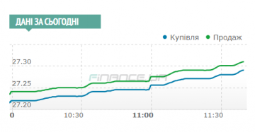 В обменниках финкомпаний: покупка 27,10-27,21 грн и продажа 27,25-27,28 грн.