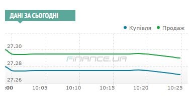 Доллар: коридор покупок и продаж 27,05−27,45 грн при спреде в обменниках финкомпаний в пределах до 20 коп, а в кассах банков до 20−25 коп.