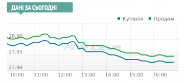 Но затем ситуация быстро стала меняться. Предложение сохранялось, а вот спрос начал сокращаться. И продавцы, скрепя сердце, стали снижать свои ценники. К обеду курс просел до 27,97/27,99 гривен, а после него котировки ушли и ниже.