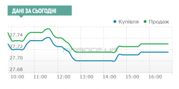 За день курс доллара почти не изменился с утренних 27,72/27,735 до 27,715/27,73 гривен, а евро подешевел с 33,11/33,13 до 33,06/33,08 к концу дня.