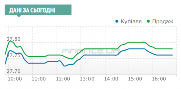 В 14:00 котировки достигли уровня 27,76/27,78 гривен за доллар. Затем – уже на единичных сделках – вначале чуть выросли до отметки в 27,775/ 27,795 к 15 часам, а потом окончательно снизились до 27,77/27,79 к 16:00 и до 27,76/27,78 к концу дня.