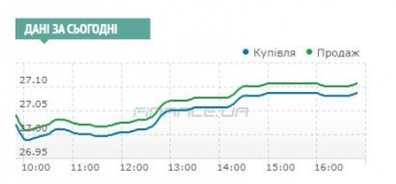 После 14 часов котировки доллара продолжили расти при сохранении неплохой активности как банков, так и их клиентов. К 15 часам только по Bloomberg уже было проведено сделок на сумму более $ 140 млн. В 15:00 котировки находились уже на отметке 27,08/27,10 гривен за доллар, а завершилась сессия уровнем 27,085/27,105.
