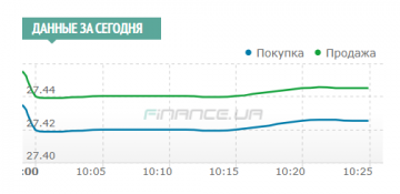 Доллар: коридор покупок и продаж 27,15 — 27,55 грн при спреде в обменниках финкомпаний в пределах 13−20 коп, а в кассах банков до 20−25 коп.