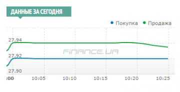 Доллар: коридор покупок и продаж 27,65−28,05 грн при спреде в обменниках финкомпаний в пределах до 20 коп, а в кассах банков до 25 коп.