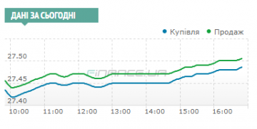 Доллар с утренних 27,42/27,44 вырос до 27,485/27,5050 гривен к концу дня.