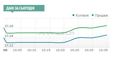 Доллар: коридор покупок и продаж 27,00 – 27,40 грн при спреде в обменниках финкомпаний в пределах до 20 коп, а в кассах банков до 25 коп.