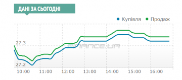 К полудню доллар вырос до 27,27/27,29 гривен, а к обеду и до 27,32/27,34 гривен. Но это был не предел.