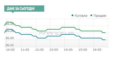 В итоге, к 11 часам курс доллара просел с утренних 26,37/27,395 гривен до 26,355/26,375 гривен, а еще до 12 часов Нацбанк закрыл свои первые покупки на $ 5 млн по 26,355 гривен. На 12:00 котировки остановились на отметке 26,35/26,37 гривен, на после полудня Нацбанк окончательно стал с покупкой по 26,35 до самого завершения активных торгов. На обед дилеры пошли при уровне котировок 26,35/26,37 гривен и с очень небольшими отклонениями они продержались до 15:30. После окончательного ухода Нацбанка, котировки несколько просели до 26,345/26,365 к 16 часам и до 26,34/26,36 гривен за доллар к завершению сессии.