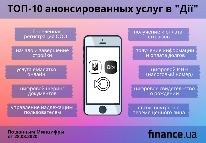 Минцифры анонсировало ТОП-10 новых услуг в «Дії» (инфографика)
