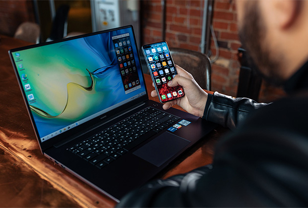 Чтобы связать ноутбуки с другими фирменными устройствами Huawei в единую экосистему, была разработана технология Huawei Share. Она открывает безграничные возможности мгновенной передачи данных. Достаточно одного касания — и на широком экране MateBook появляется проекция мобильных приложений и доступ к памяти смартфона. Можно общаться в мессенджерах, принимать звонки или редактировать фото, не беря в руки телефон.