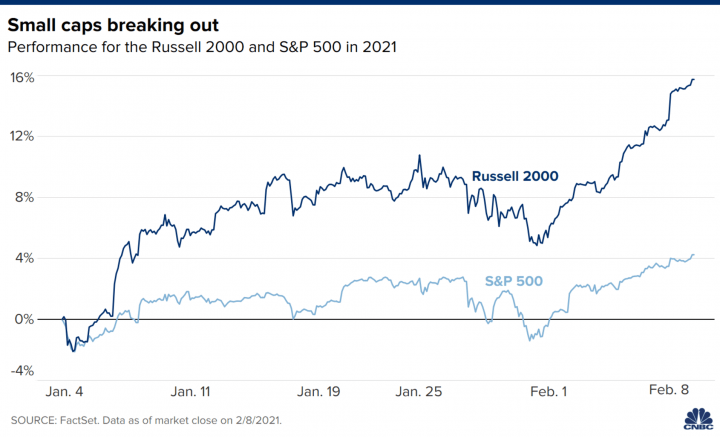 Индекс малой капитализации вырос на 16% с начала года, поскольку инвесторы устремились к крупным компаниям с высокой стоимостью на фоне растущих надежд на быстрое восстановление экономики.