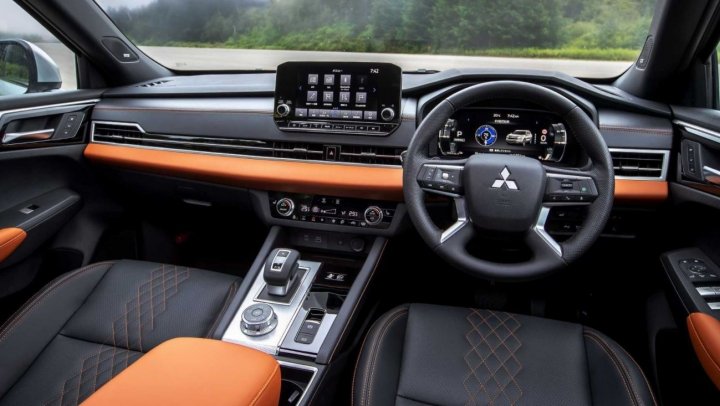 Outlander PHEV оснащён 20-дюймовыми легкосплавными дисками и предлагается в десяти цветах, включая популярные Red Diamond, White Diamond и Black Diamond. Абсолютно во всех моделях крыша чёрного цвета. Спереди заметна решётка с хромированными вставками, а внутри расположилась приборная панель с диагональю 12,3 дюйма. Рядом установлен 9-дюймовый сенсорный экран информационно-развлекательной системы.