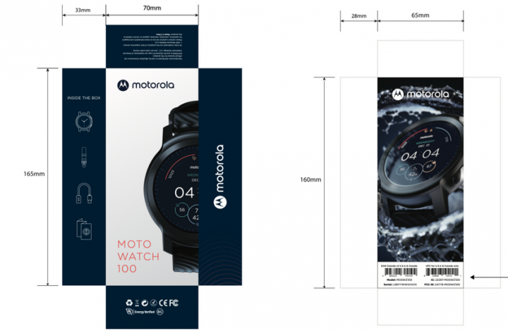Из информации о продукте известно, что Moto Watch 100 получат алюминиевый корпус с защитой от воды до 5 атмосфер. Известно, что у них будет датчик сердцебиения, встроенный модуль GPS, Bluetooth 5.2 и аккумулятор ёмкостью 355 мАч.