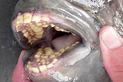 В американском штате Флорида мужчина поймал пугающую рыбу с зубами, похожими на человеческие. Об этом сообщает газета Daily Mirror.