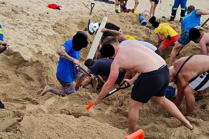 Друзья британца и посетители пляжа вызвали службу спасения и принялись его откапывать. Вырытого из песка мужчину доставили в больницу, ожидается, что он полностью восстановится.