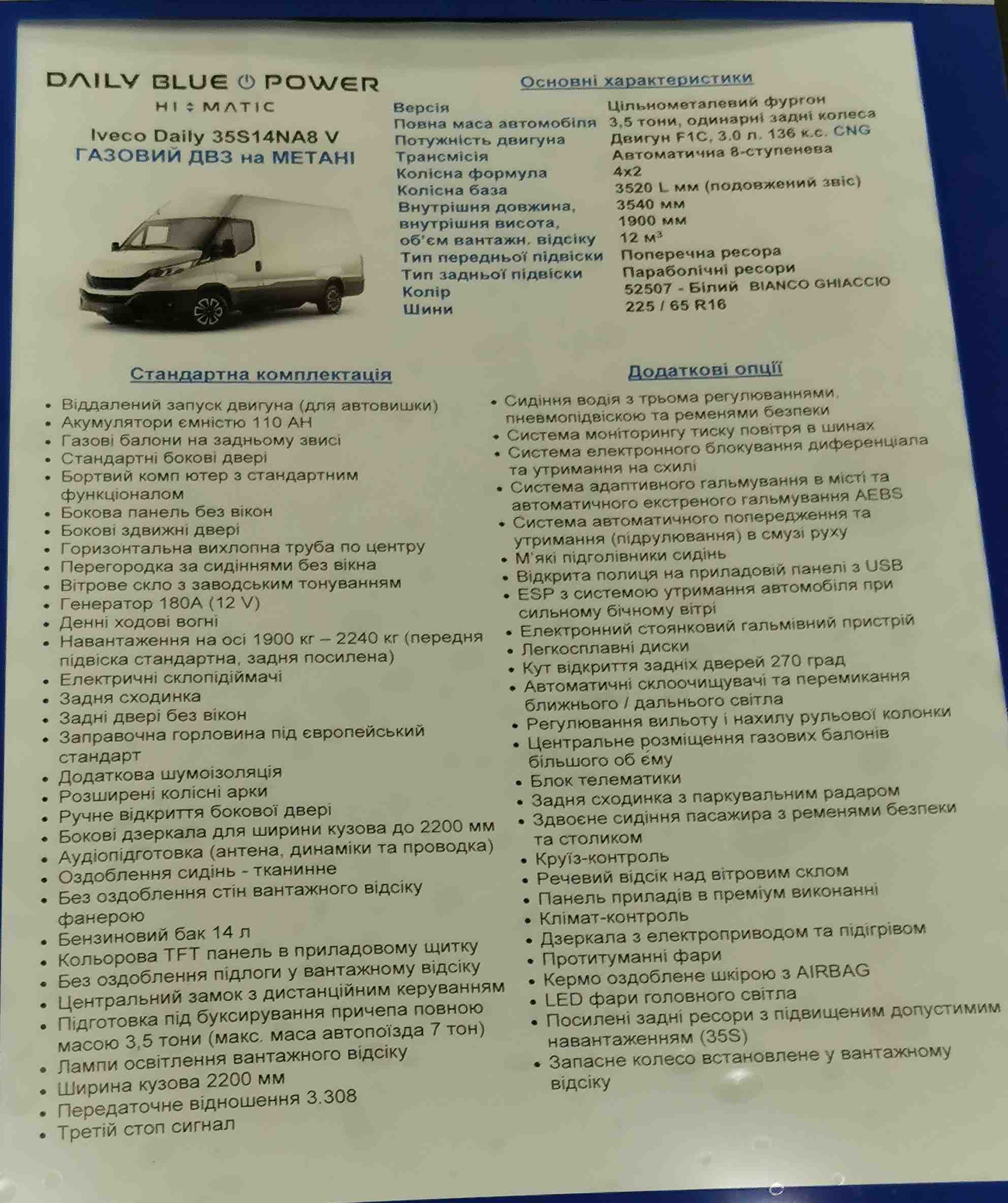 Cреди них – машина с 3,0-литровым двигателем в 136 л. с., работающим на метане. Отметим, что IVECO – единственная компания на украинском рынке, предлагающая в данном классе автомобили на альтернативном топливе.