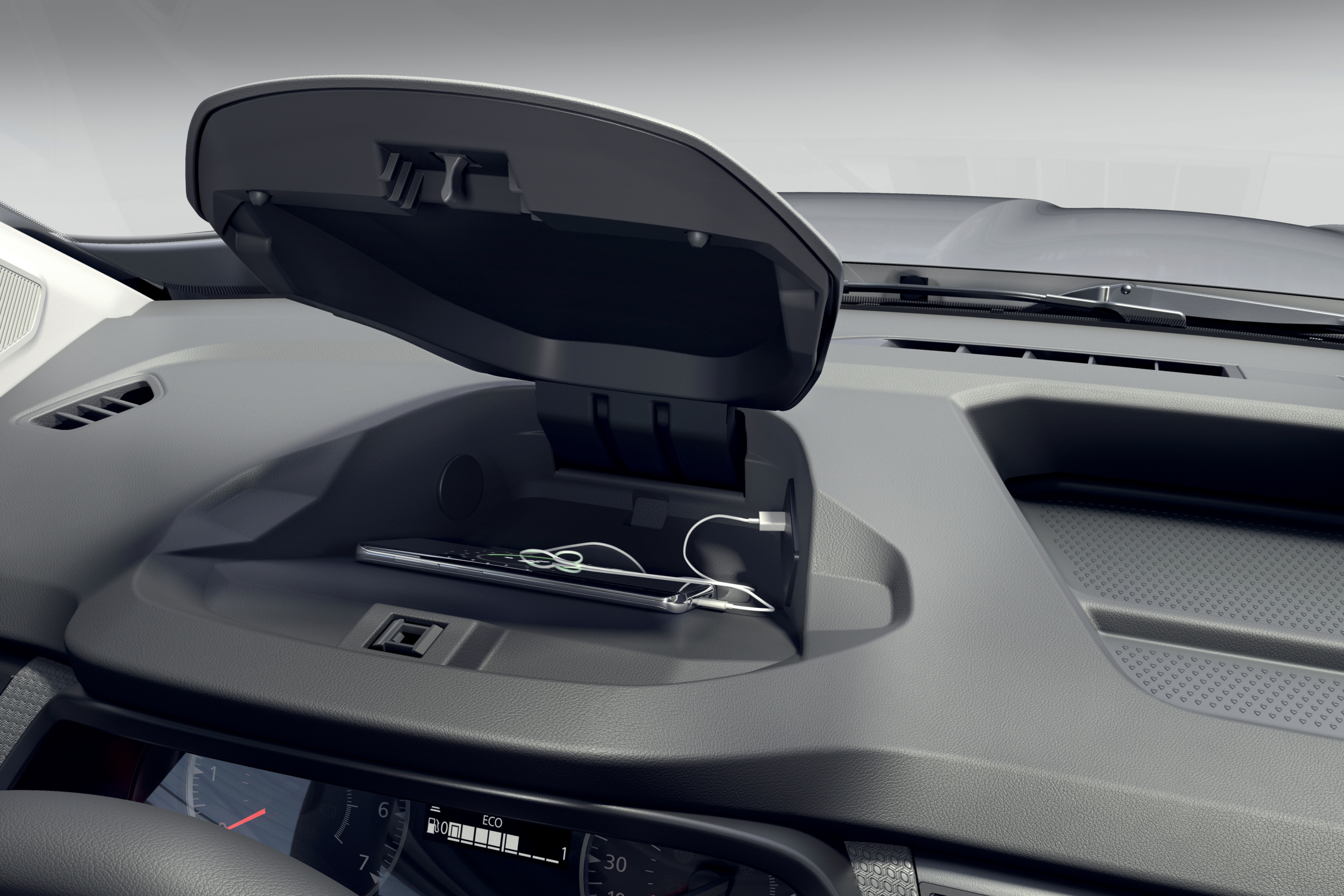 В салоне возможна установка индукционного зарядного устройства для смартфона, до трех розеток USB и четырех розеток на 12 В, одна из которых в грузовом отсеке.