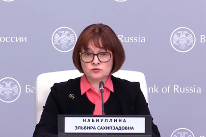Председатель Центробанка России Эльвира Набиуллина вышла на пресс-конференцию по итогам заседания совета директоров с брошью, на которой изображена перечеркнутая инфляционная спираль. Трансляция мероприятия ведется на YouTube-канале ЦБ.