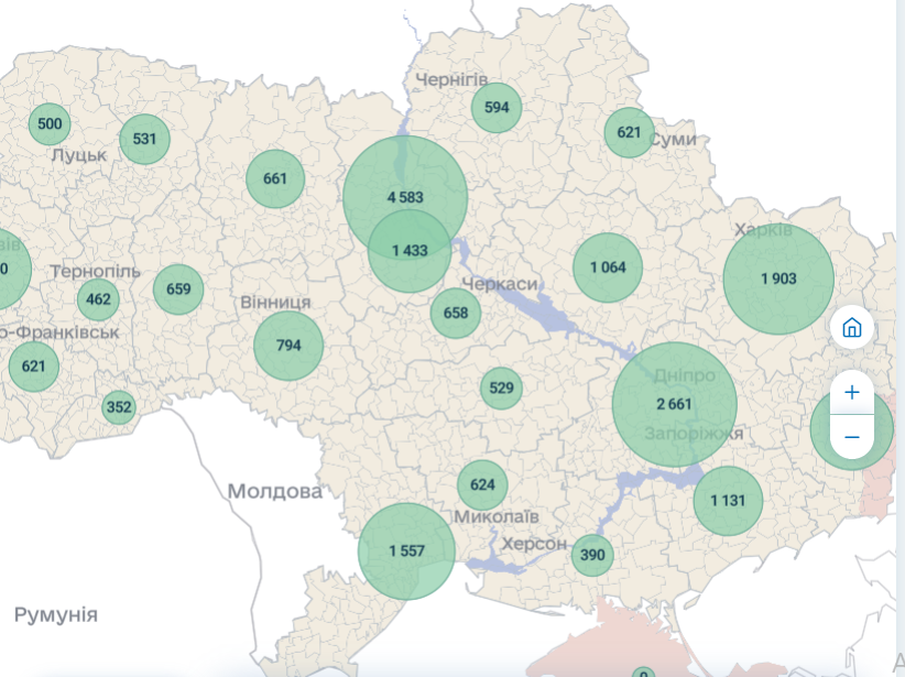 Следующим этапом запланировано реализовать возможность отображения графиков, показателей на отчетную дату по сравнению с предыдущим периодом, создание паспортов территориальных общин.