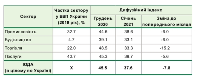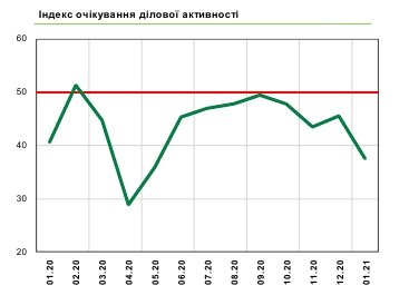 Украинский бизнес существенно ухудшил оценки текущего экономического состояния своих предприятий. На фоне ужесточения правительством карантина индекс ожиданий деловой активности (ИОДА) в январе 2021 года снизился до 37,6 (в декабре – 45,5).