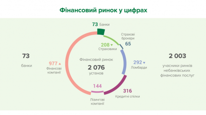 Сейчас небанковский рынок состоит из 188 рисковых (non-life) (было 190) и 20 лайфовых (страхование жизни) страховщиков, 292 ломбардов (было 298), 316 кредитных союзов, 144 лизинговых компаний, 977 финансовых компаний (было 976), 65 страховых брокеров.