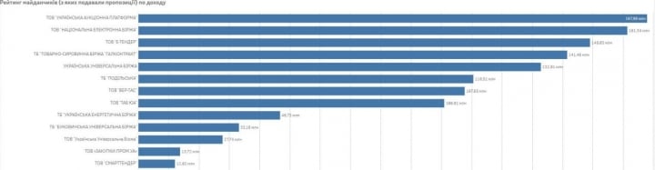 Национальная электронная биржа (НЭБ) занимает первое место среди действующих аккредитованных площадок в системе Прозорро.Продажі за весь период работы этой системы проведения аукционов. Общий объем продаж через биржу составил 4,9 млрд. гривен, что на 1 млрд превышает показатель ближайшего конкурента.