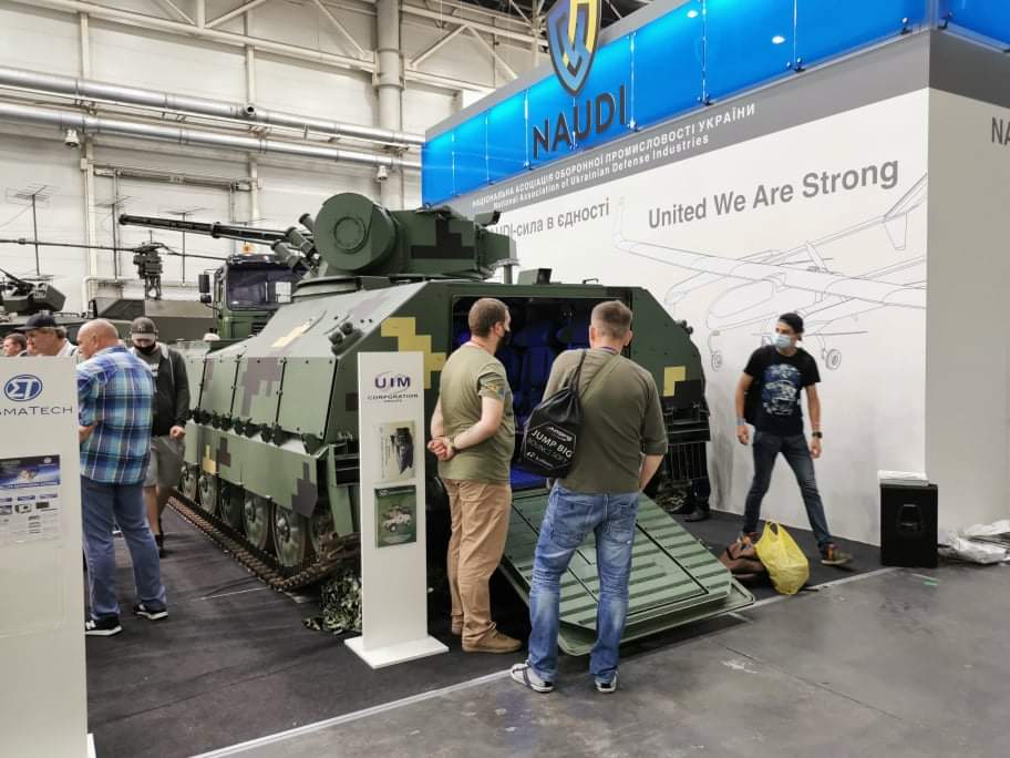 Корпорация «УкрИннМаш», входящая в Национальную ассоциацию оборонной промышленности Украины (NAUDI), представила на объединенном стенде гусеничный плавающий бронетранспортер «Кевлар-Е». Он предназначен для транспортировки личного состава, а также поражения низколетящих и наземных целей на дальности до 5000 м.