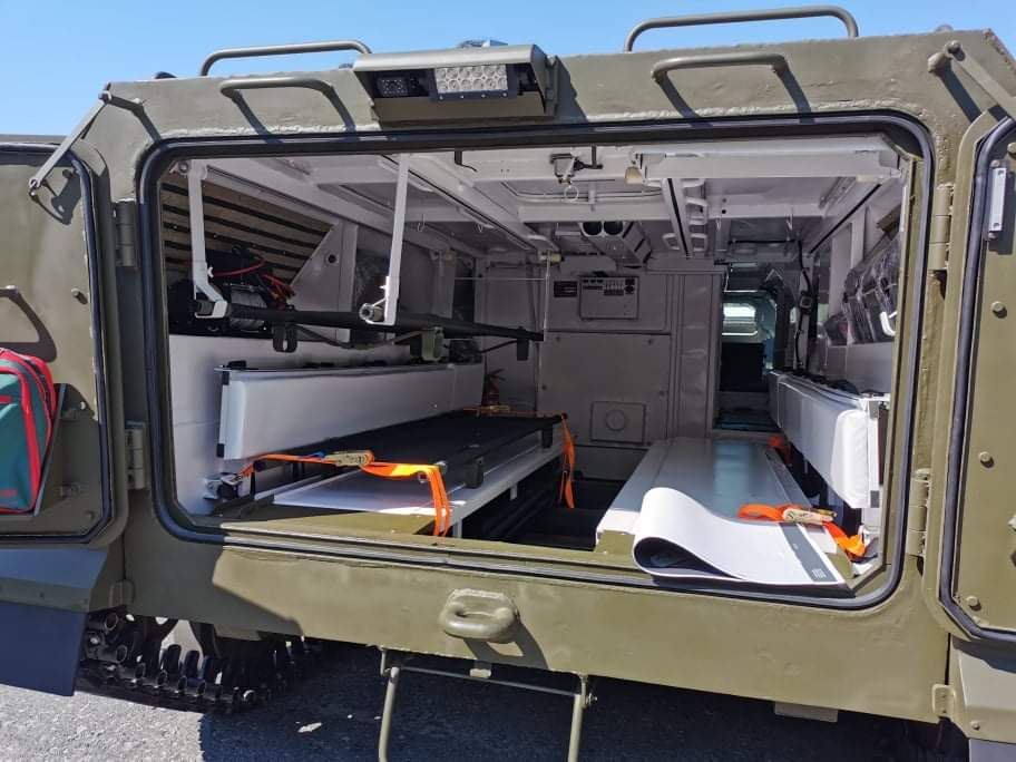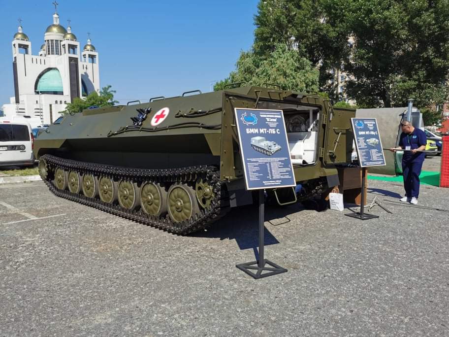 ООО «Научно-производственная компания «ВК Система» показало Бронированную медицинскую машину БММ МТ-ЛБу С. Она предназначена для проведения поиска и эвакуации раненных с поля боя и оказания первой медицинской помощи с дальнейшим из перевозки в медицинские подразделения.