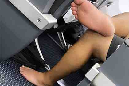 На размещенной в сети фотографии запечатлен сидящий в соседнем кресле лайнера путешественник, одетый в короткие шорты — на кадре видно, что он полностью разулся и положил одну босую ногу на другую.
