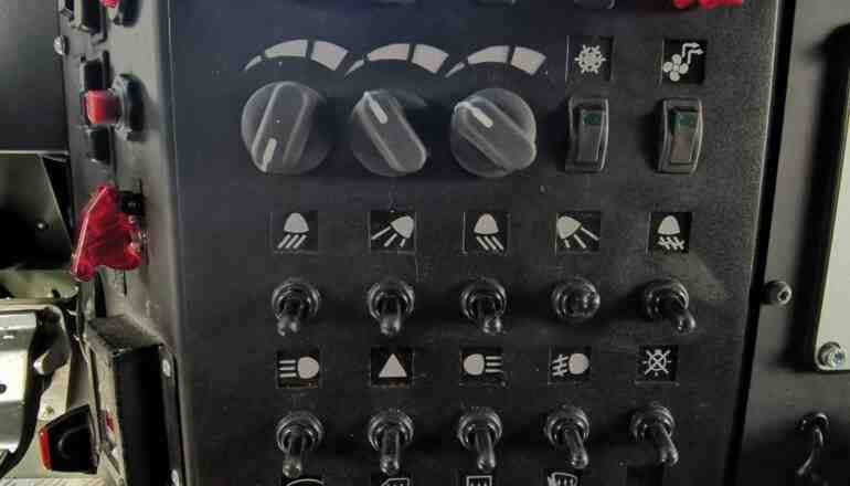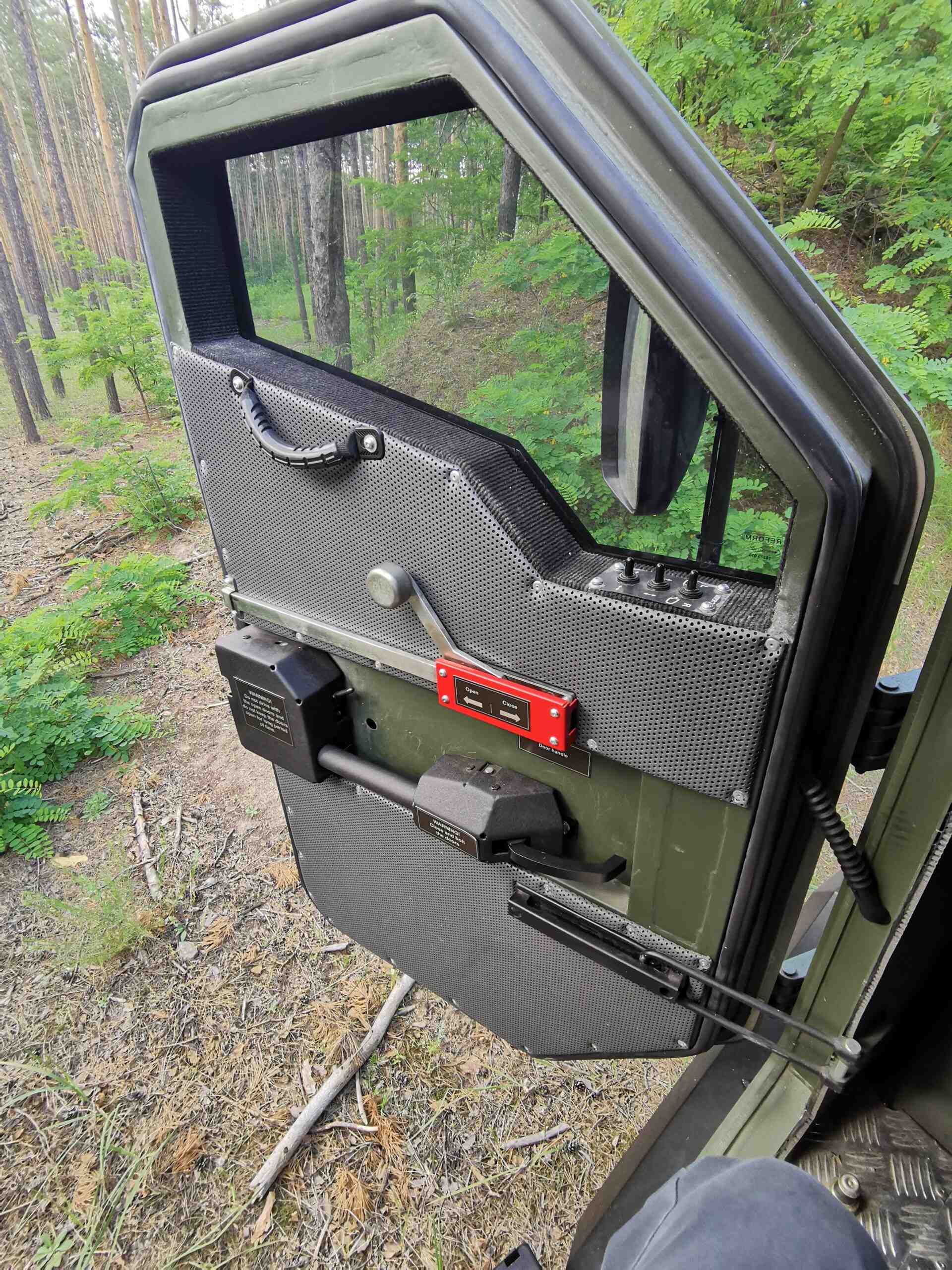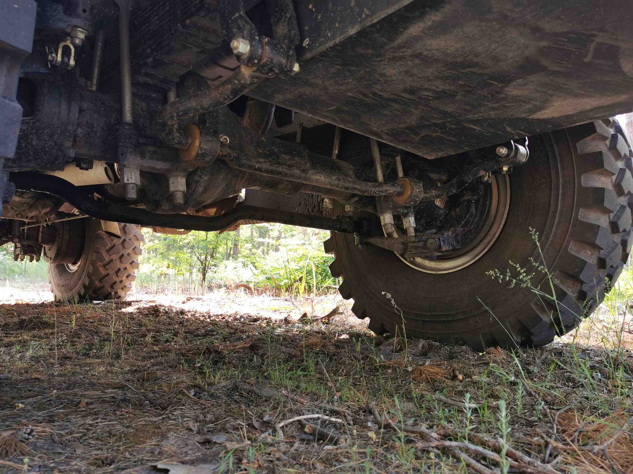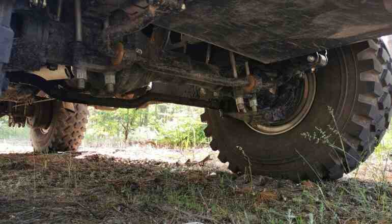 Что же касается пересеченной местности, то здесь, конечно же, выручает полный привод, а также блокируемые дифференциалы. Также стоит отметить отличную работу усиленной рессорной подвески колес. Руль легкий, однако на бездорожье держать его нужно крепко. В густом лесу отмечаем тросовые веткорезы. Хочется также похвалить камеру заднего и переднего вида, которые помогают при маневрировании.