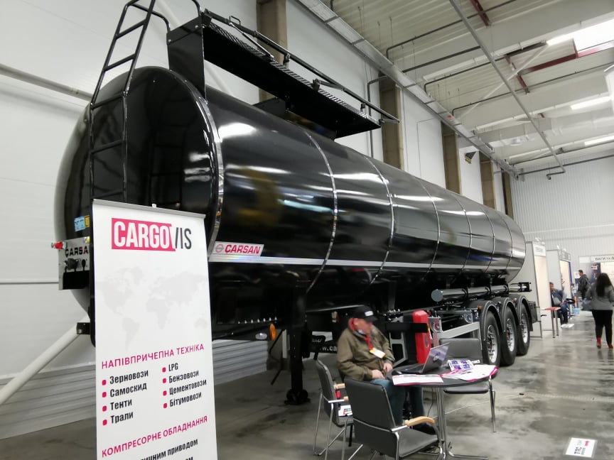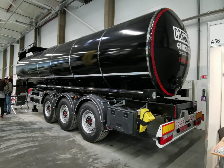 На выставке «HD Технополигон» также можно увидеть и полуприцеп битумовоз турецкой фирмы Carsan, представленный на стенде компании CARGOVIS. Объем цистерны составляет 28 м куб. Собственная масса – 7500 кг. Габаритая длина – 10 795 мм. Высота ССУ 1150 – 1250 мм. Установлены оси SAF INTRADISC с нагрузкой 9000 кг. Допустимая полная масса – 35 000 кг.