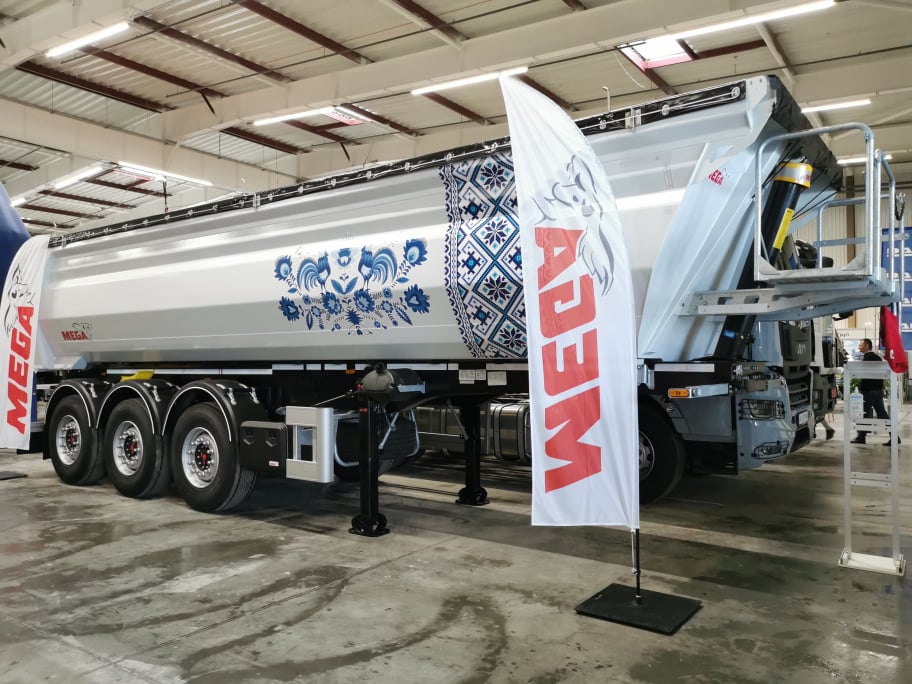 ООО «Укрростехно», официальный дистрибьютор компании MEGA в Украине – демонстрирует самосвальный полуприцеп FORT 3, предназначенный для перевозки строительных материалов, сельхоз продукции, горных пород и металлолома. Производится по технологии французской компании BENALU c 2017 года.