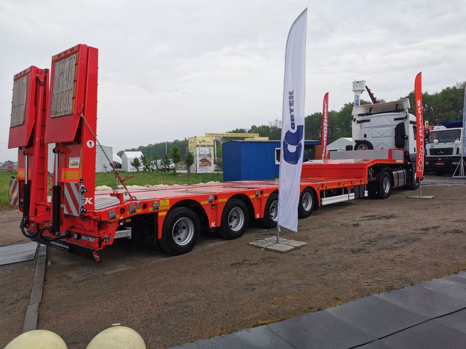 На стенде компании АВТЕК представлен четырехосный трал марки Kassbohrer – модель K.SLS 4/2N-18/40. Он имеет длину платформы 9240 мм, а внешняя длина составляет 13 190 мм. Вісота платформы – 890 мм. Длина гуська – 3950 мм. Колесная база – 8480 мм. Высота ССУ – 1300 мм. Шины применяются размерности 245/70 R17.5. Шасси изготовлена из высокопрочной стали ST 52 в соответствии со стандартом ISO 1726.