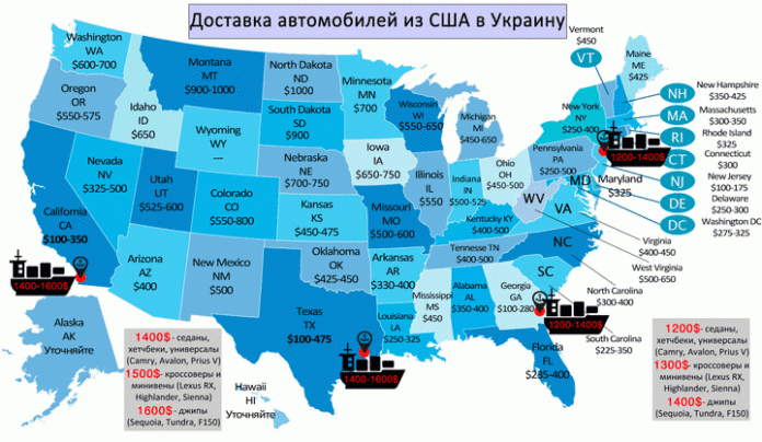 При определении таможенной стоимости автомобиля и начислении налогов на него при растаможивании учитывается не только стоимость автомобиля (информацию о реальной цене ТС таможня берет от сервисов, которые отслеживают результаты торгов на аукционах США), но и расходы на транспортировку в Украину.