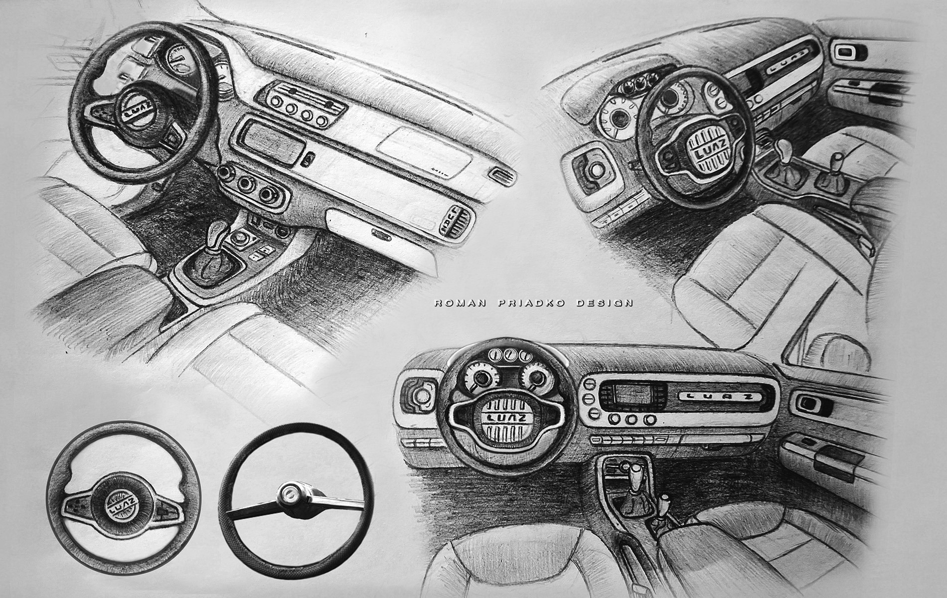 Дизайнер решил показать кроме внешности еще и интерьер внедорожника. Новый ЛуАЗа-969 получил крупную переднюю панель, округлые переключатели и двухспицевый руль в классическом стиле.