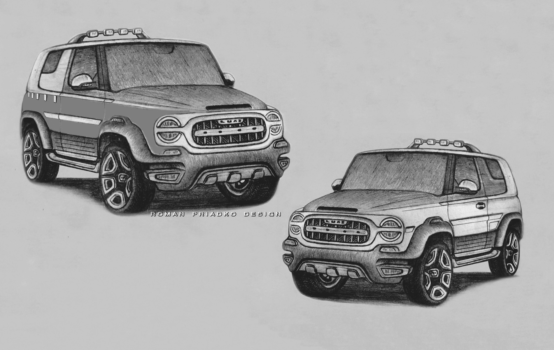 Если более детально присмотреться к изображениям автора, то возникает понимание того, что он вдохновлялся моделями в стилистике Jeep Wrangler, Suzuki Jimny и Mercedes G-class. Сам же Роман уверяет, что здесь нет ничего удивительного, поскольку все они – внедорожники 20 века.
