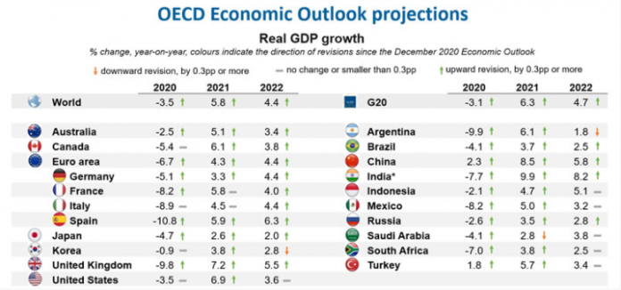 Организация экономического сотрудничества и развития (ОЭСР) улучшила прогноз роста мирового ВВП в 2021 году до 5,8%.