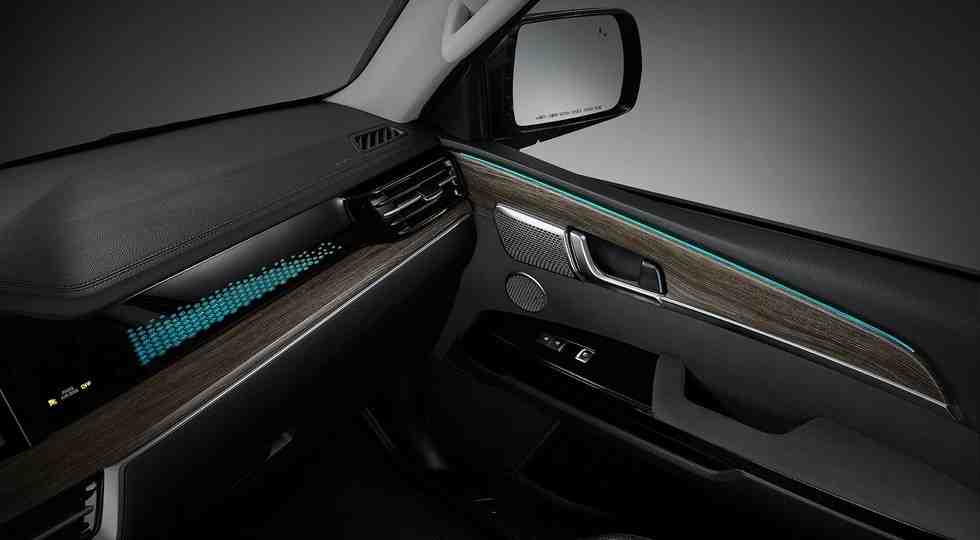 Новый Kia Mohave Gravity занял место топового исполнения модели и получил собственную переднюю решетку и новые диски на 20 дюймов. В салоне появились отделанные алькантарой элементы (рулевое колесо, центральный подлокотник, карты дверей) и расширенная география подсветки. Если стандартный внедорожник предлагает красивые светодиодные полоски только на передней панели, то у Gravity они есть и на дверях.