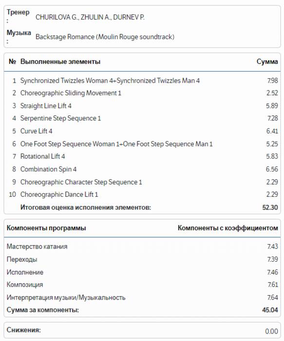 1. Габриэла Пападакис/Гийом Сизерон (Франция) – 226.98;