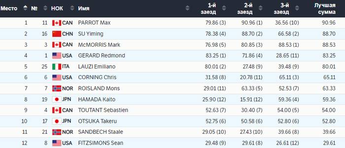 Парро в первом заезде был третьим, во втором уверенно показал лучший результат, а в третьей попытке у него был 10-й результат. Его лучший показатель – 90.96 не сумел превзойти ни один из соперников.